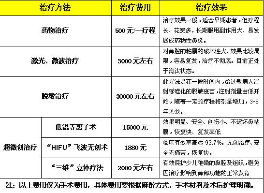 ■激光、微波治疗:3000元左右,对鼻腔粘膜的破坏性大、效果比较局限,容易,治疗不。目前正处于淘汰状态。