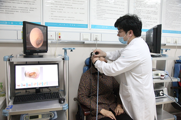 “我现在讲话的声音你听得见吗?”谢主任嗓音亮度提高了一大段。“您讲话我能听得见,我的右耳佩戴了助听器。”“那你是哪边听力不好?”“我俩耳朵听力都不好。”“你的耳朵有没有什么不舒服的地方?”“没有,就是听不见。”“嗯,那现在给你佩戴助听器之前,还需要给你做个耳部的检查和听力测试。”“嗯,好、好。”