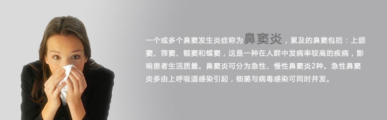 一个或多个鼻窦发生炎症称为鼻窦炎,是鼻窦粘膜的非特异性炎症。累及的鼻窦包括:上颌窦、筛窦、额窦和蝶窦,会影响患者生活质量。鼻窦炎可分为急性、慢性鼻窦炎2种。
